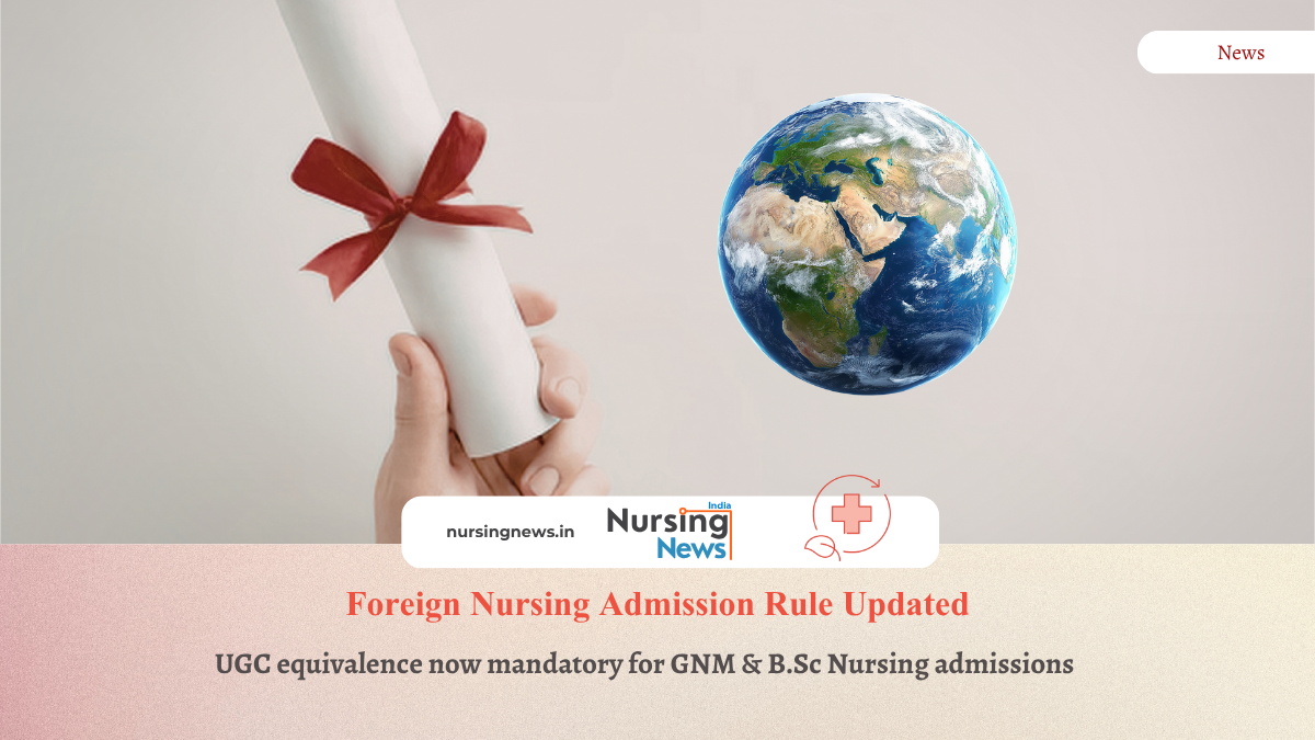 According to the notification, foreign nationals must now obtain equivalence of their academic qualifications (Class XII level) directly from the University Grants Commission (UGC) before applying for admission to nursing courses in India.